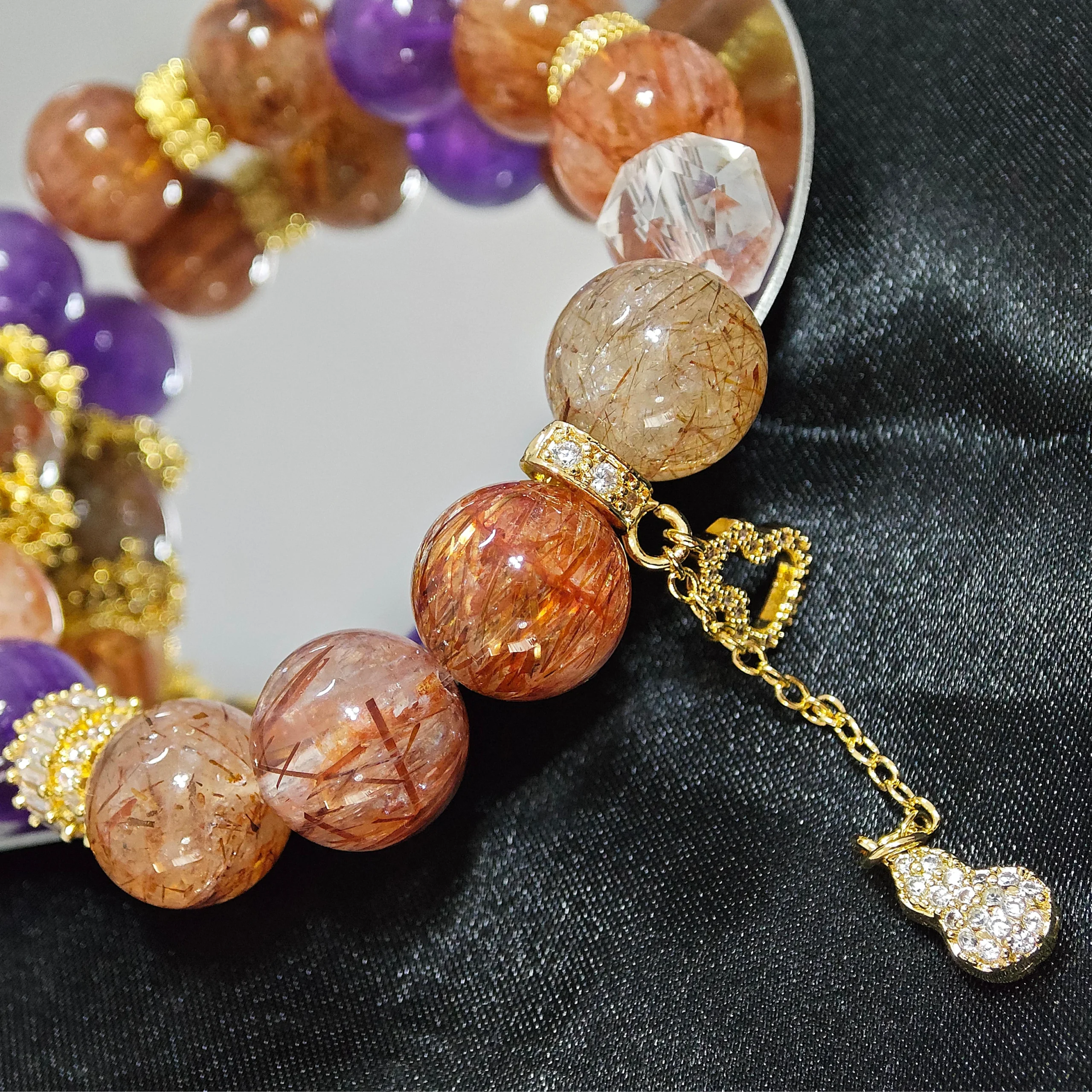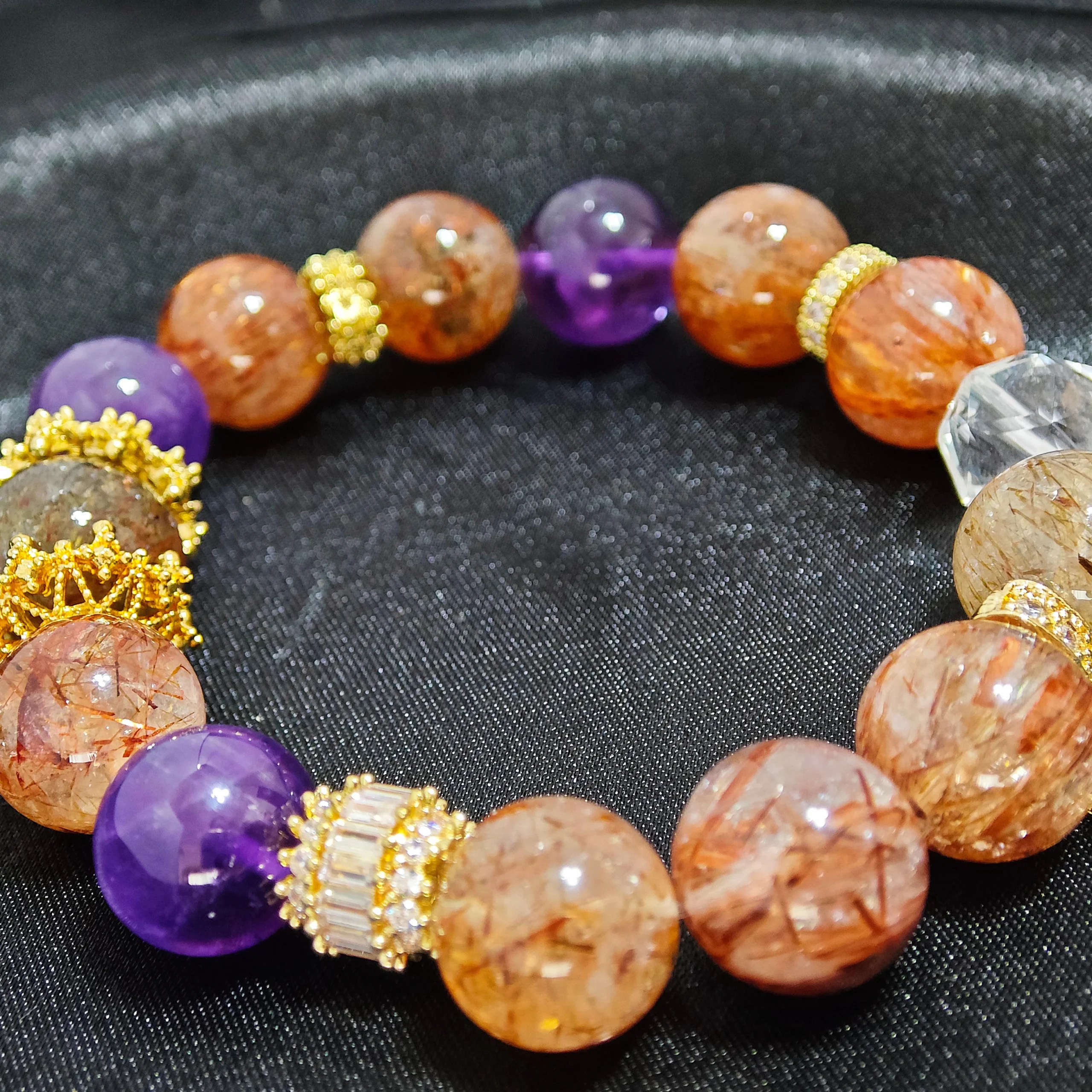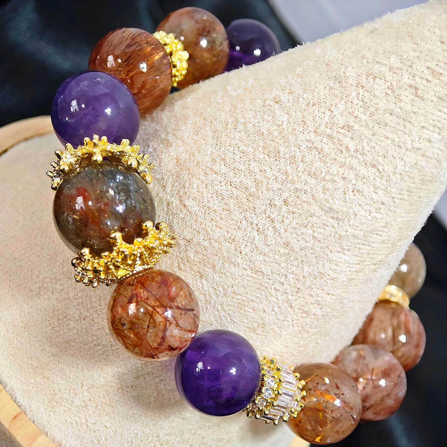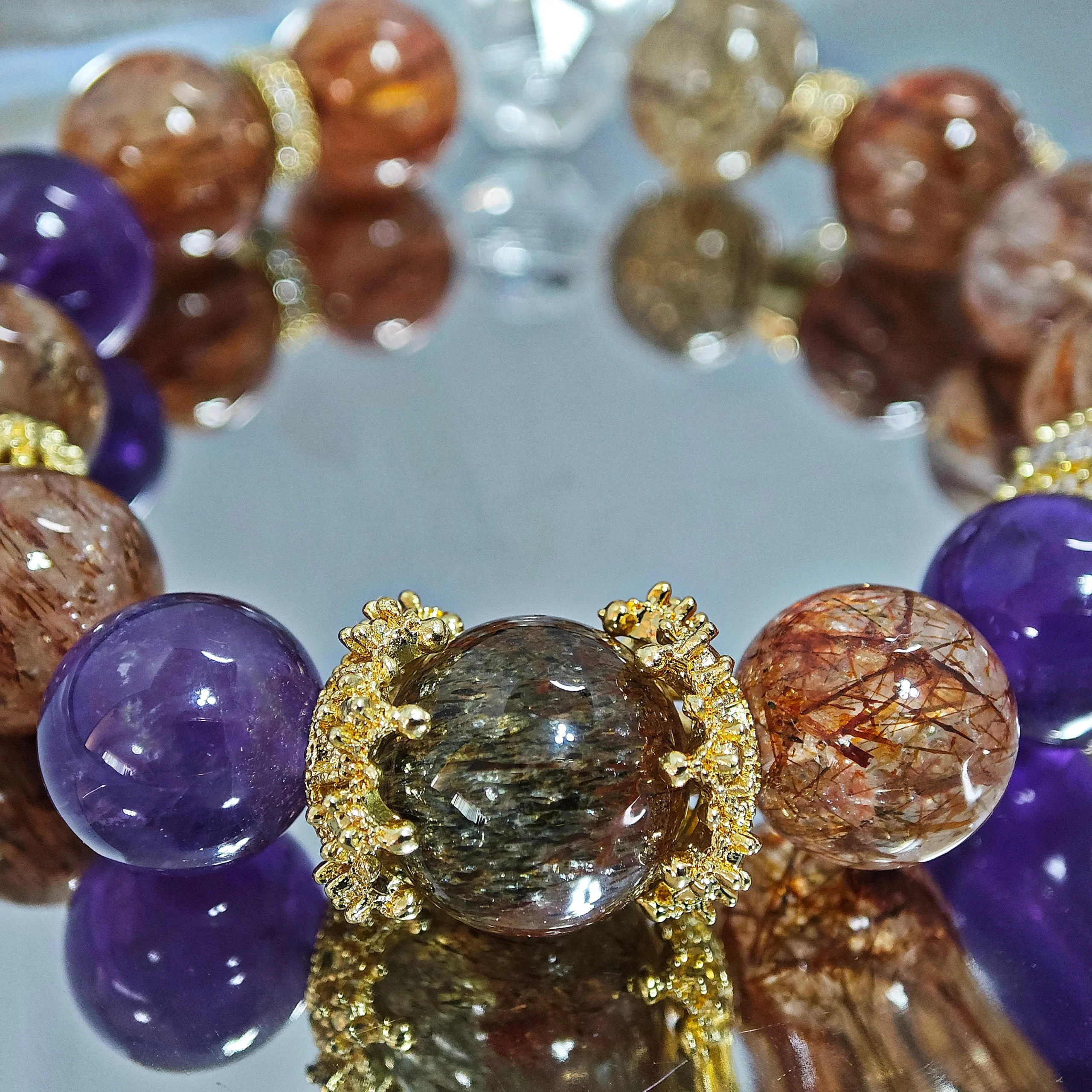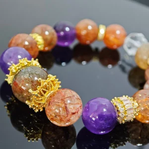 - Striking Presence Design: Features large, eye-catching Black Gold Super Seven main beads complemented by Amethyst, creating a design with significant presence.